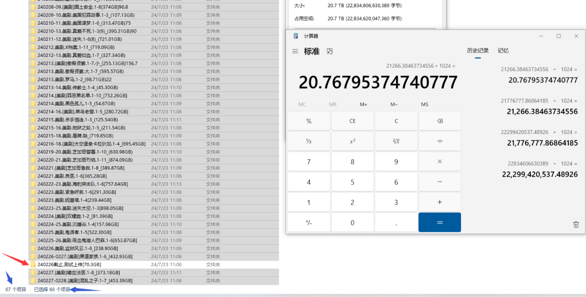 所以减1项为66项,体积改为 [20.77TB],想一口气全部转存 那就是 [20.84TB]