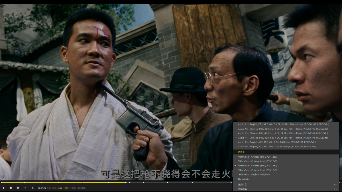 内封5条PGS字幕:简中/繁中/简中/繁中/英,第3-4条中字是对应国语音轨的。字幕颜色灰色