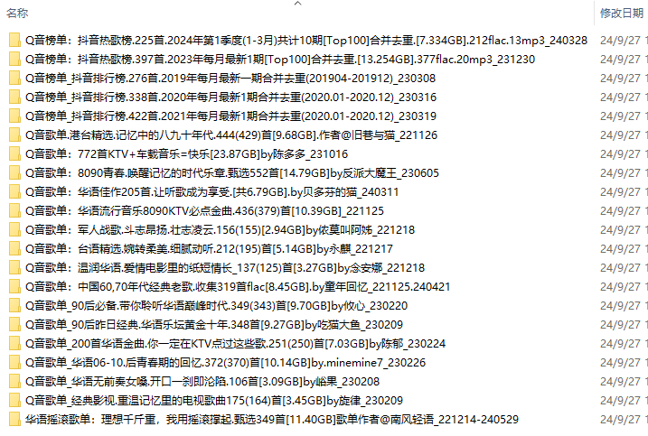[无损音乐]华语热曲收集4060首.240927_[122.09GB] Hi-Res 分轨 FLAC