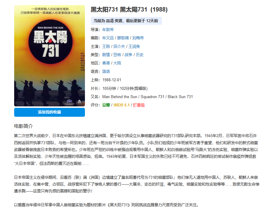 曾经于我国轰动一时的日军侵华罪行影片!与《索多玛的120天》一样不可不看且只能看一次的影片!!