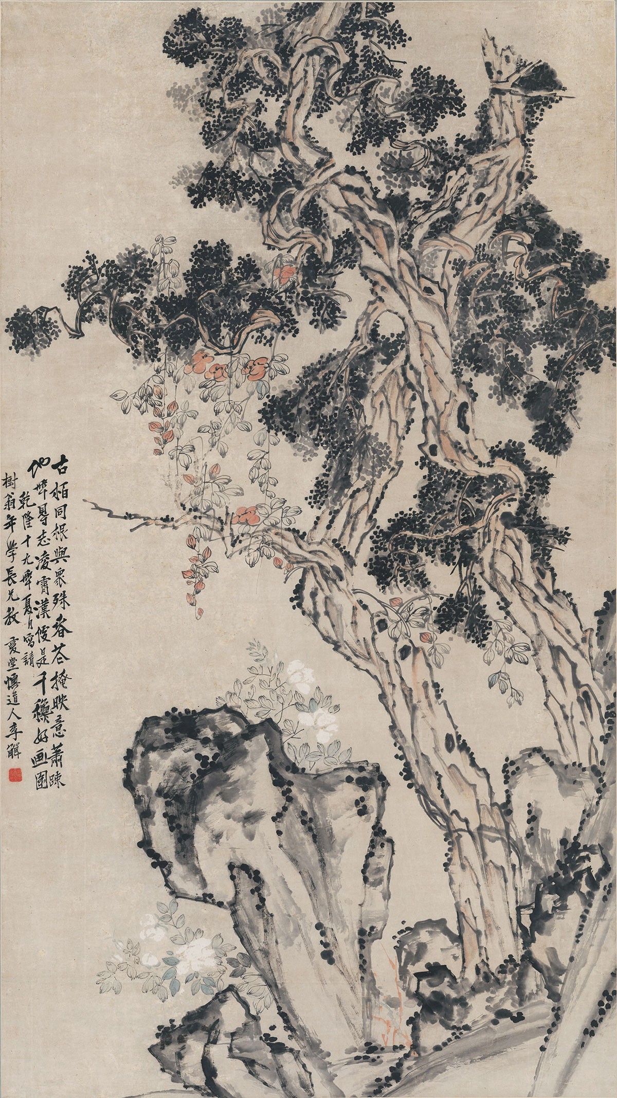 "天博022-吴镇 多福图轴+纸本墨笔"